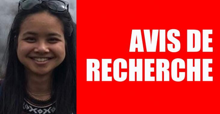 La personne recherchée est Ammara Charette-Labbé, une jeune femme de 22 ans mesurant 149 cm et pesant 95 livres. Elle est asiatique, elle a les cheveux et les yeux noirs.