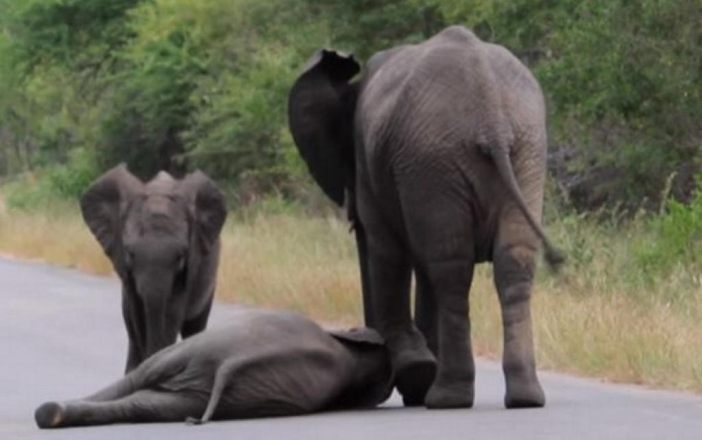 Des automobilistes médusés voient un éléphanteau s'effondrer sur la route juste sous leurs yeux