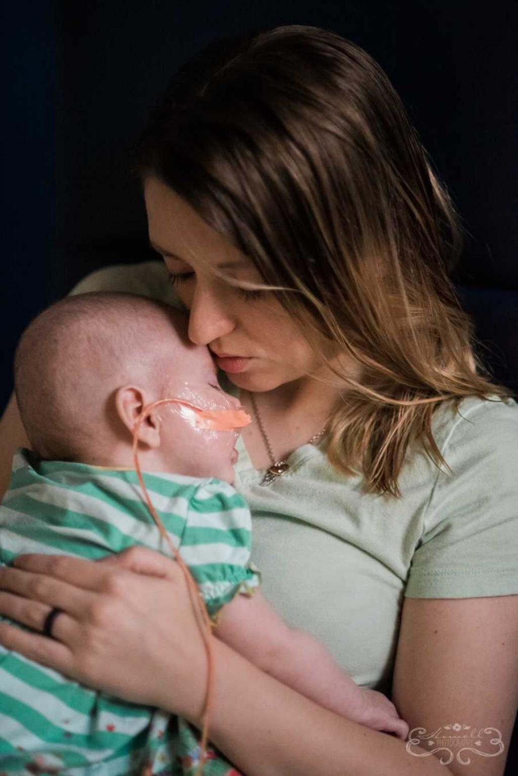 « Une fois sortie de l’hôpital, j’ai emmené mes deux enfants vivre chez ma grand-mère. J’étais complètement vidée émotionnellement et physiquement. J’avais été projetée dans une vie complètement différente et j’étais terrifiée. Je n’avais aucune expérience dans les soins d’un enfant ayant des besoins spéciaux. J’ai dû apprendre jour après jour et j’ai commis de nombreuses erreurs en cours de route. J’étais tellement en colère. J’étais en colère contre mon ex-mari, j’étais en colère contre Dieu pour avoir permis que cela arrive à mon enfant, et je me suis sentie désolée pour moi-même. Il y avait tellement de nuits que je restais éveillée avec mon enfant qui hurlait de douleur et étouffait constamment, et je finissais par pleurer moi-même jusqu’à m’endormir. Je me suis dit : “Je veux que ma fille revienne. Ce n’est pas ma fille, je veux juste la voir sourire à nouveau et l’entendre roucouler et la tenir sans tubes” J’ai quitté mon travail pour prendre soin d’elle. Je ne savais pas qu’un enfant comme elle était capable de recevoir des soins infirmiers privés, je ne l’ai su que des mois plus tard. Donc c’était juste moi et elle. Elle avait besoin de plusieurs rendez-vous chez le médecin et de différentes thérapies. Après des mois de travail, je me suis finalement habitué à une “nouvelle normalité”. »