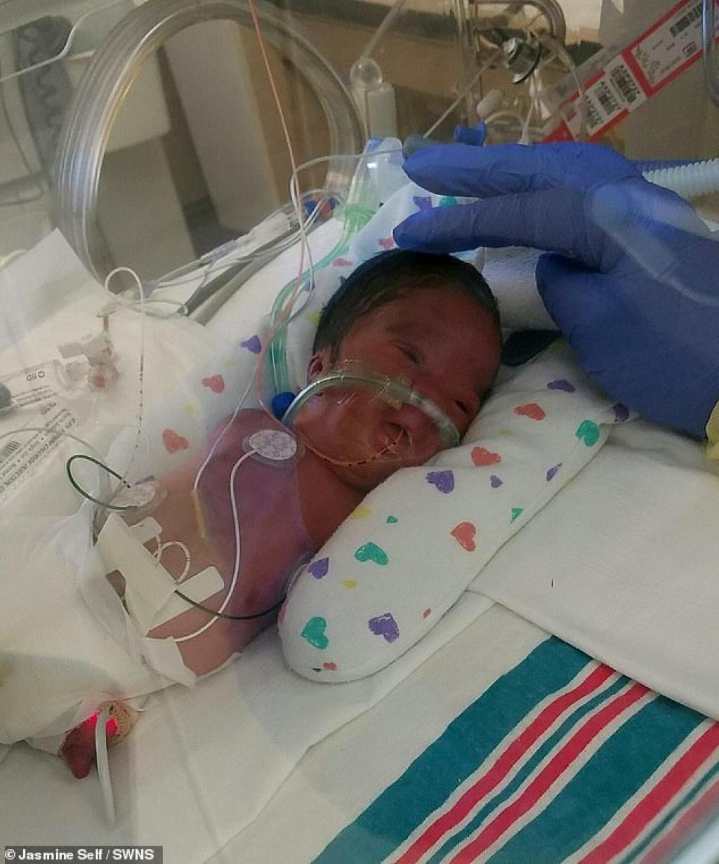 Sa maman, une femme de 24 ans nommée Jasmine Self, a appris à 5 mois de grossesse qu'il y avait un sérieux problème avec le développement du petit RJ.