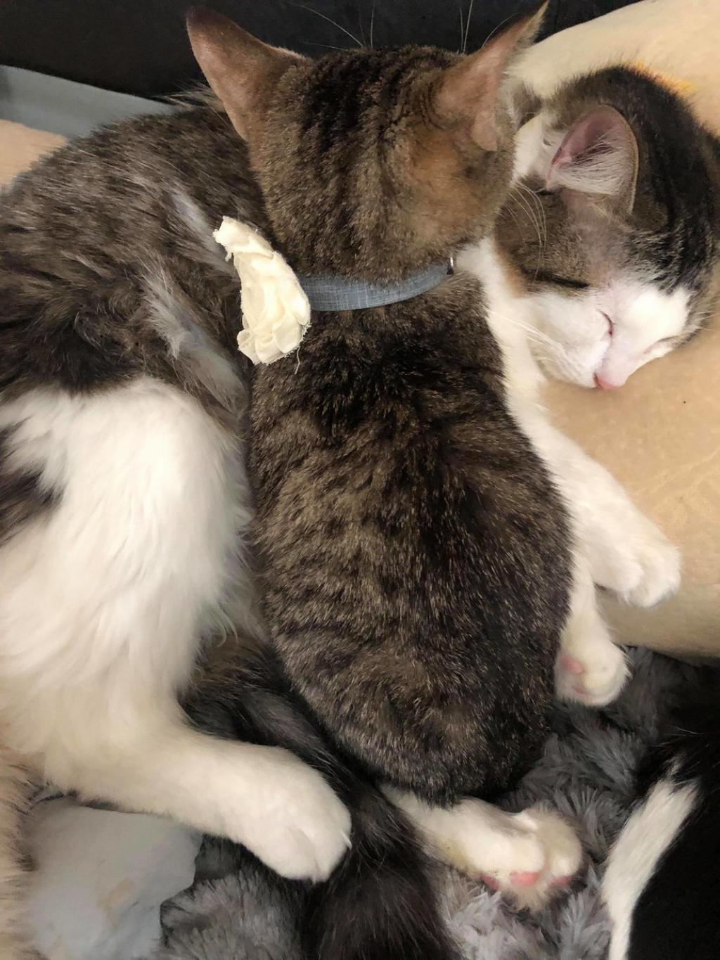 De plus, Tennessee accueille maintenant tous les nouveaux résidents au refuge. Un vieux chat nommé Bishop a récemment été laissé au refuge et la petite chatte s'est empressée de lui montrer à quel point il était entre bonnes mains au refuge.