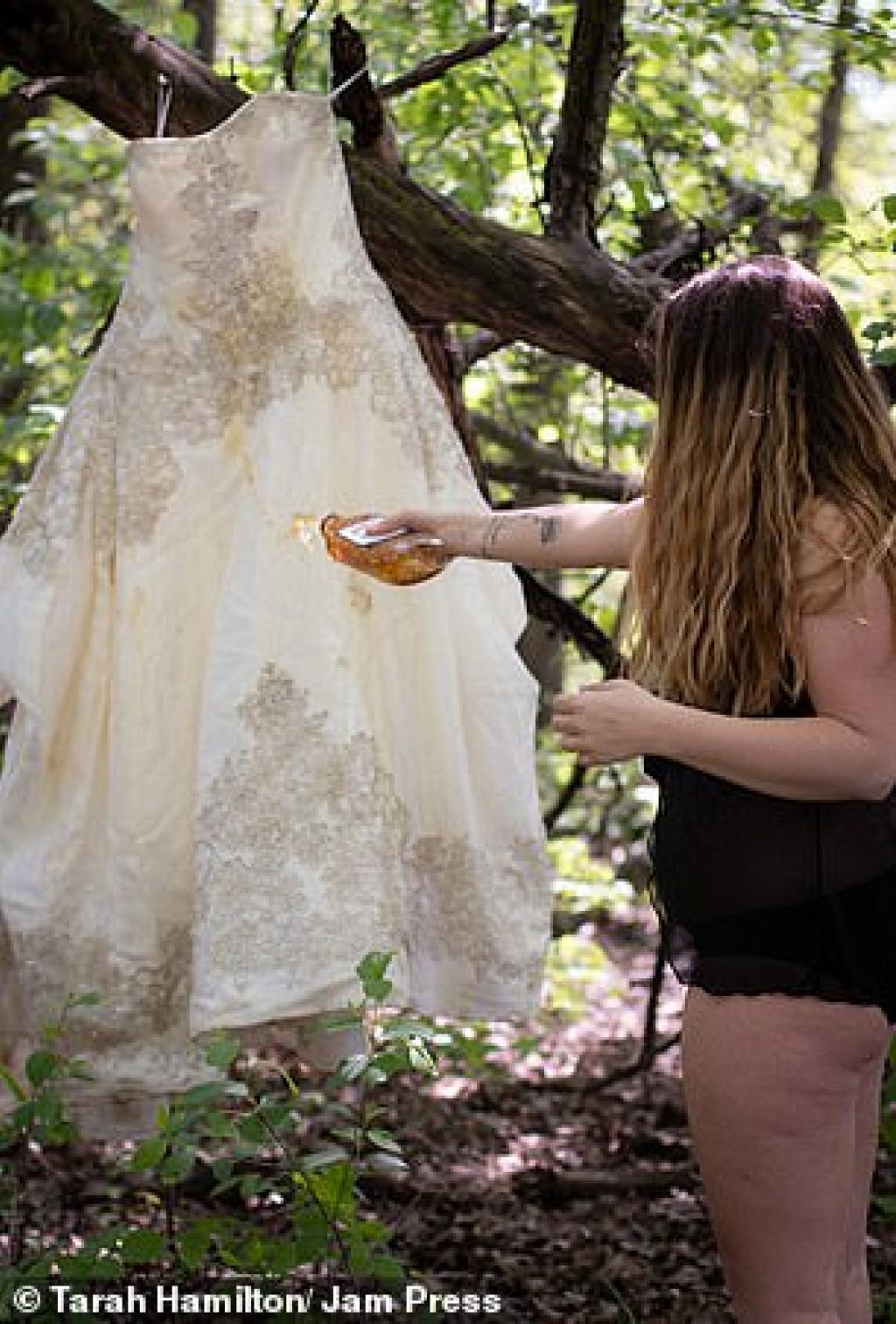 Une femme a décidé d'organiser une séance photo afin d'immortaliser le moment où elle brûlerait sa robe de mariage, suite à un divorce qui a mis à une relation de 8 ans avec un homme violent.