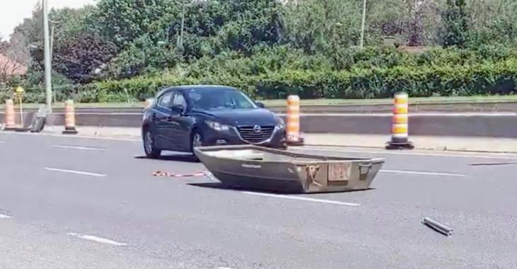 Un automobiliste a perdu sa chaloupe en plein milieu de la route 132.