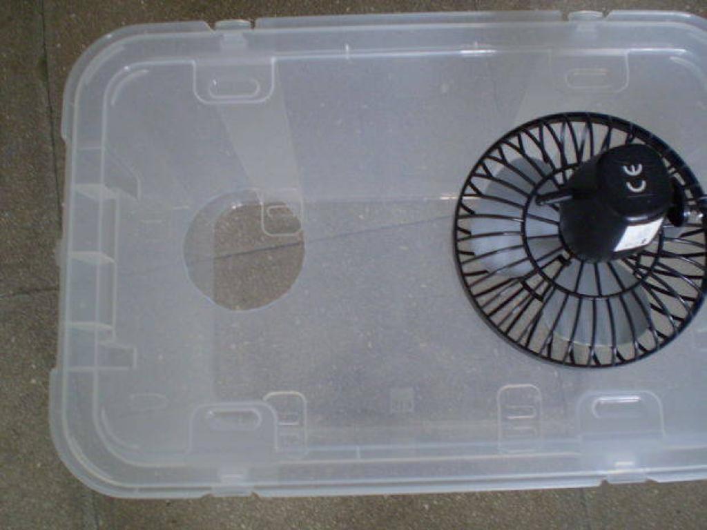 3) Toujours avec le cutter, faites un trou à la taille du ventilateur