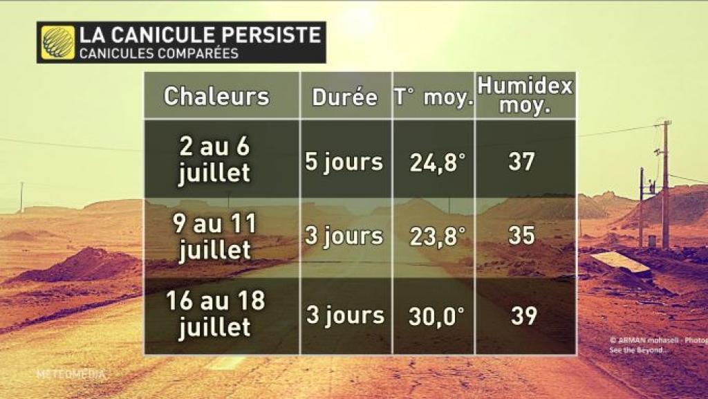 Il faudra donc se préparer à ressentir des températures au-dessus des 30 degrés Celsius du 15 au 17 juillet, en plus des nuits où le thermomètre ne devrait jamais descendre sous la barre des 20 degrés Celsius.