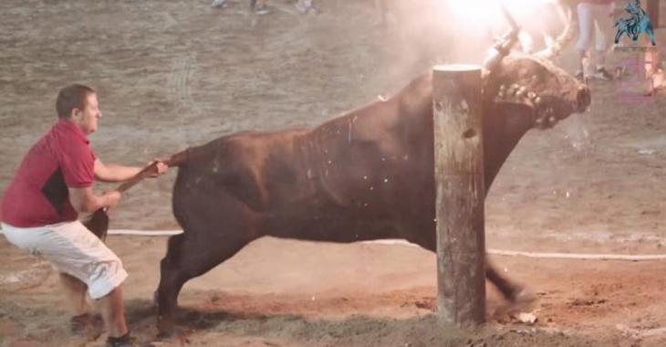 Une fois que les cornes de l'animal sont enflammées, la corde qui le maintenait est détachée, puis l'animal commence à courir en panique dans l'arène.