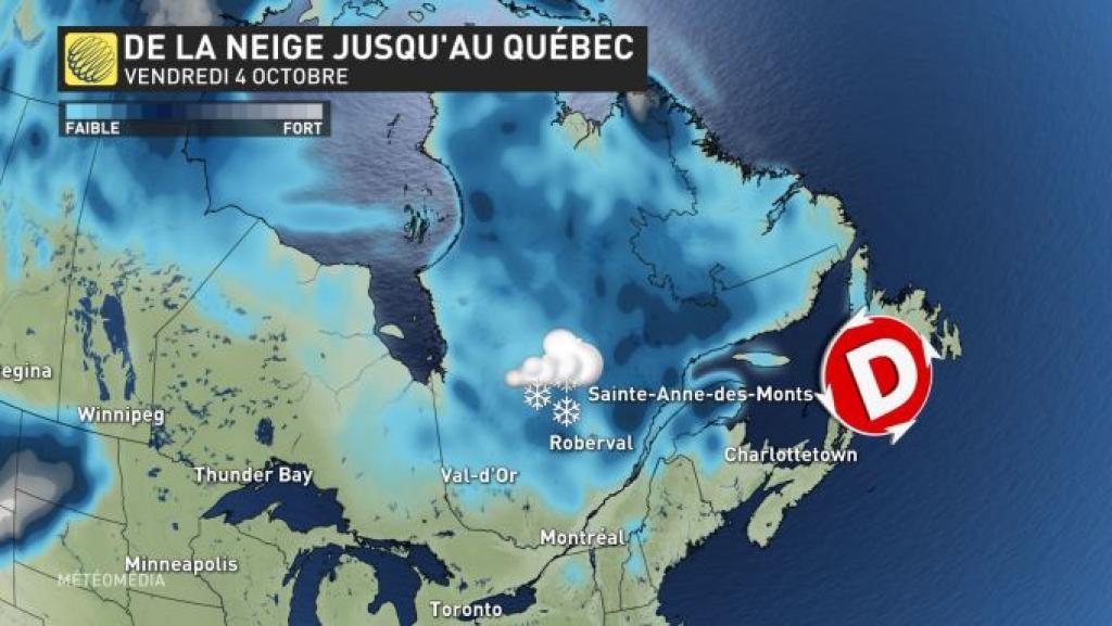 Les modèles pourraient considérablement changer dans les prochains jours, mais pour le moment, il n'est pas impossible que des secteurs comme Val-d'Or et le Saguenay puissent recevoir quelques flocons au cours de la première fin de semaine d'octobre.