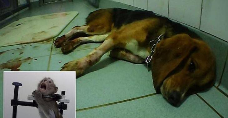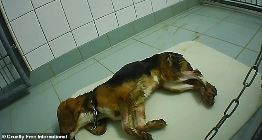 Des images troublantes de chiens qui meurent en se vidant de leur sang ont été dévoilées et celles-ci auraient été prises dans le même laboratoire où des singes ont été pris en photo en train de subir des expériences cruelles.