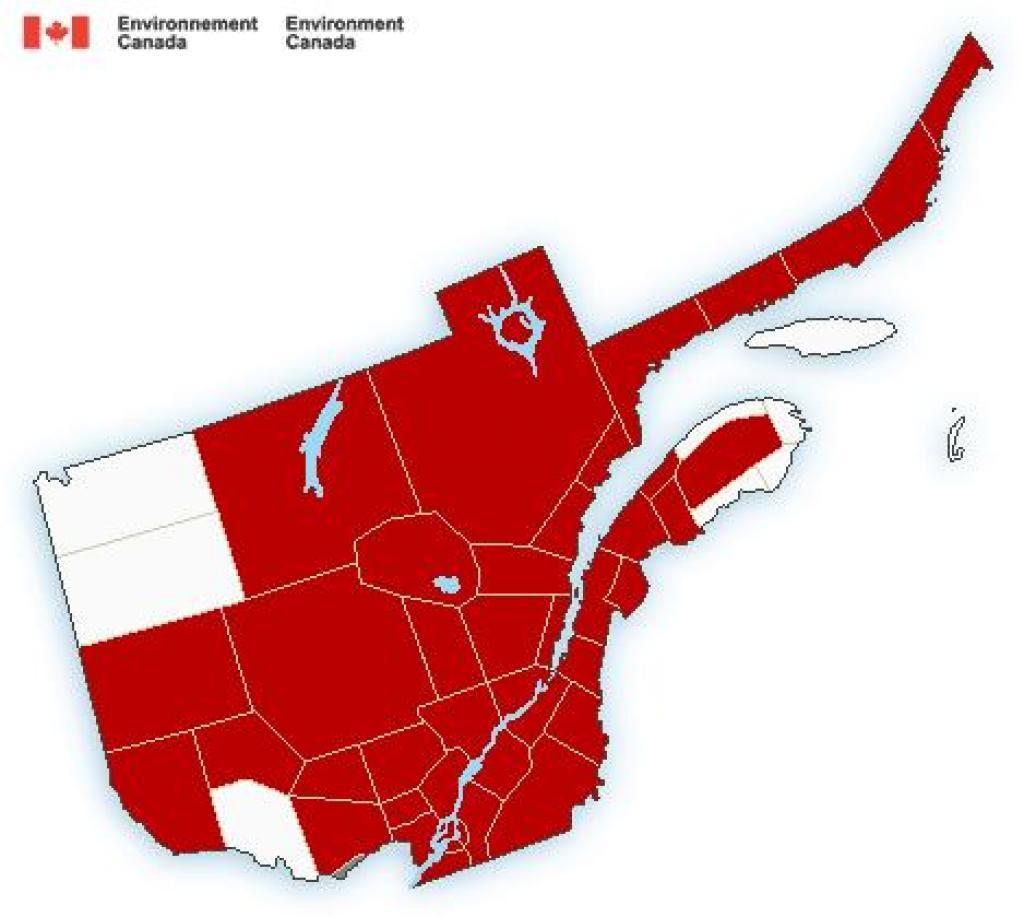 Presque tout le Québec a été placé sous une alerte météorologique par Environnement Canada, ce jeudi.