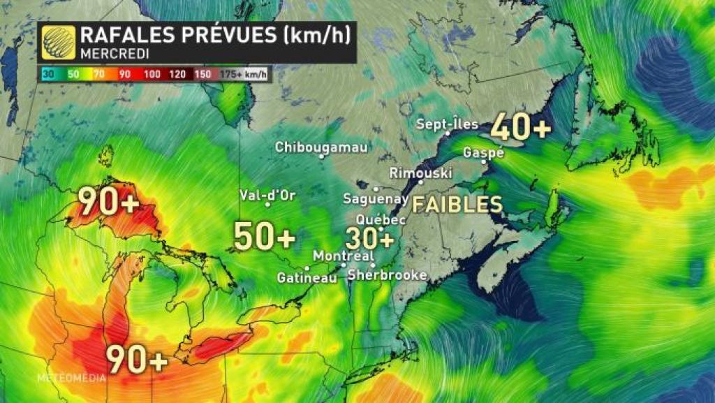 Le système en question fera son entrée sur le territoire de la province par le nord-ouest mercredi en matinée, et ce, après s'être gorgée d'humidité dans les Grands Lacs.