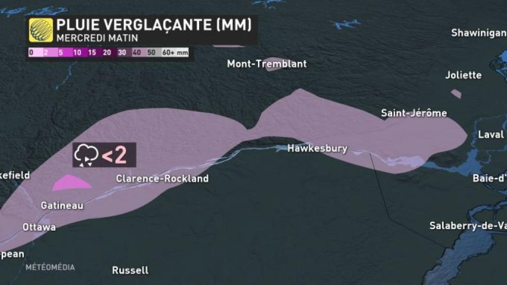Pour ce qui est de la pluie, c'est Gatineau qui devait être le premier secteur touché, tandis que le secteur de Montréal devait écoper dès le début de l'après-midi.