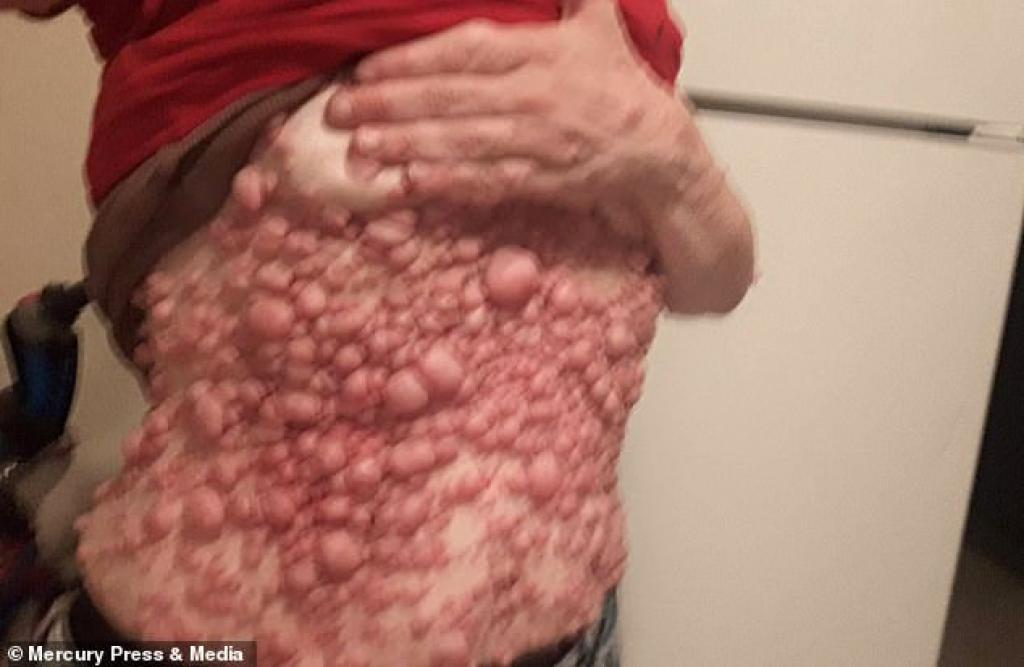 Le corps recouvert de tumeurs, elle se fait harceler par des étrangers qui la croient contagieuse
