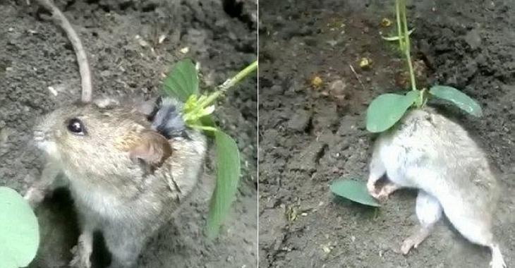 Suite à la découverte de ce phénomène unique en son genre, des voisins ont filmé la créature afin d'en conserver des archives, mais le fermier a aussitôt amené le rongeur chez lui pour lui retirer la plante qui avait poussé dans son dos, car de toute évidence, cela faisait souffrir énormément la petite créature.