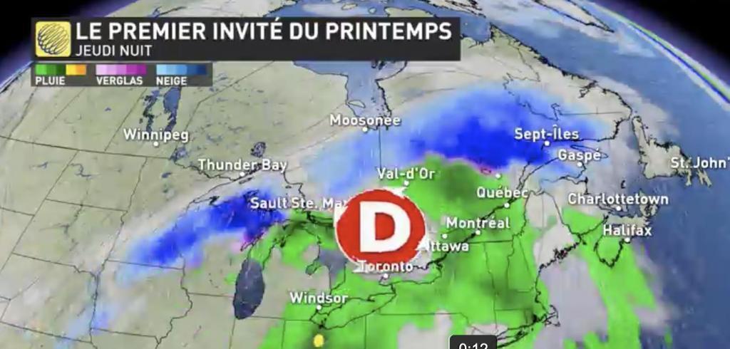MétéoMédia indique que les Québécois auront un peu de répit au cours des journées de mardi et de mercredi. Toutefois, les choses vont commencer à se gâter dans la nuit de jeudi à vendredi. La faute à une dépression qui nous viendra tout droit du Colorado. Résultat ? Le Québec devrait avoir droit à une tempête pour finir la semaine et donc célébrer l'arrivée du printemps.