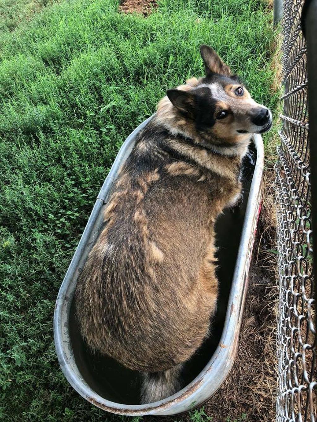 Suite au sauvetage, on a baptisé le chien Teddy. Ce dernier avait des problèmes de surpoids et on estime qu'il est âgé de 8 ans. Les secouristes ont aussi remarqué que le chien avait beaucoup de difficulté à seulement se dresser sur ses pattes.